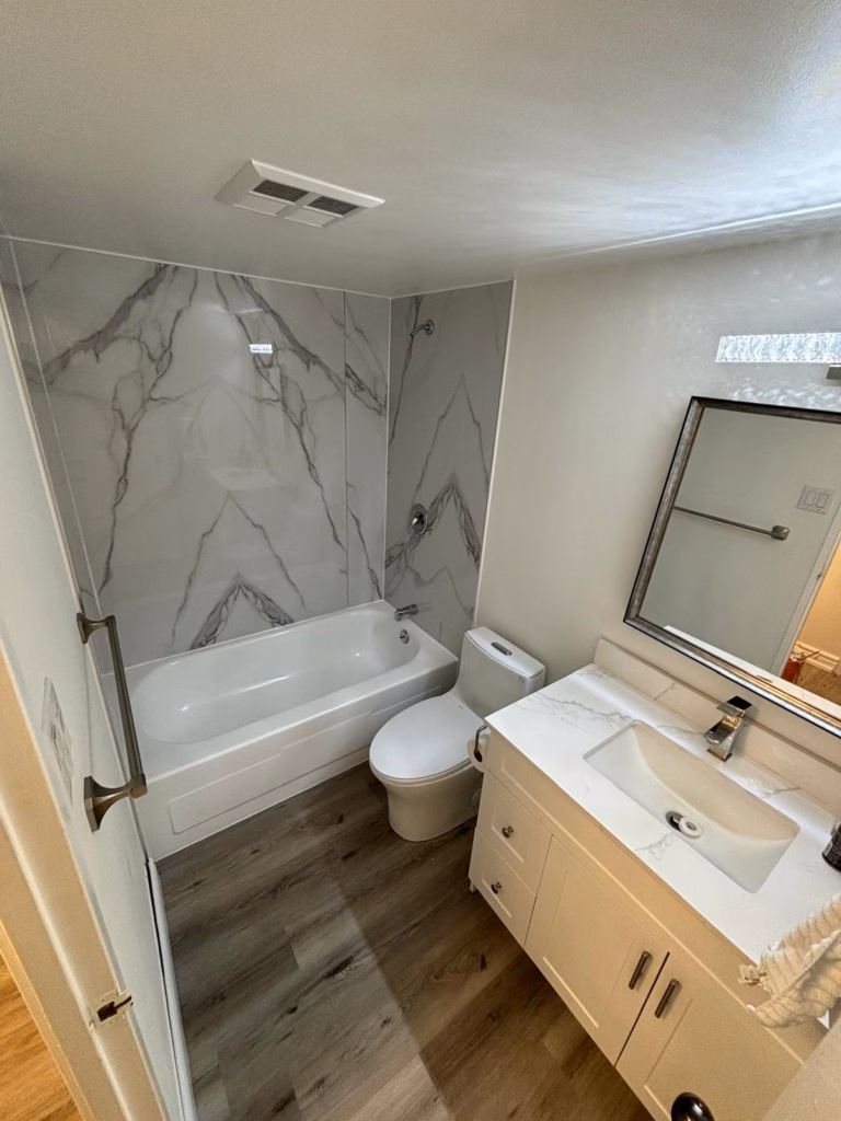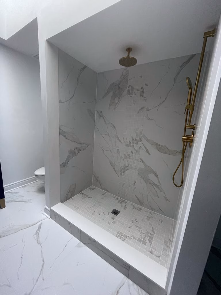 Luxury vinyl or porcelain tile flooring that’s waterproof, durable, and easy to clean — built to last in busy bathrooms.